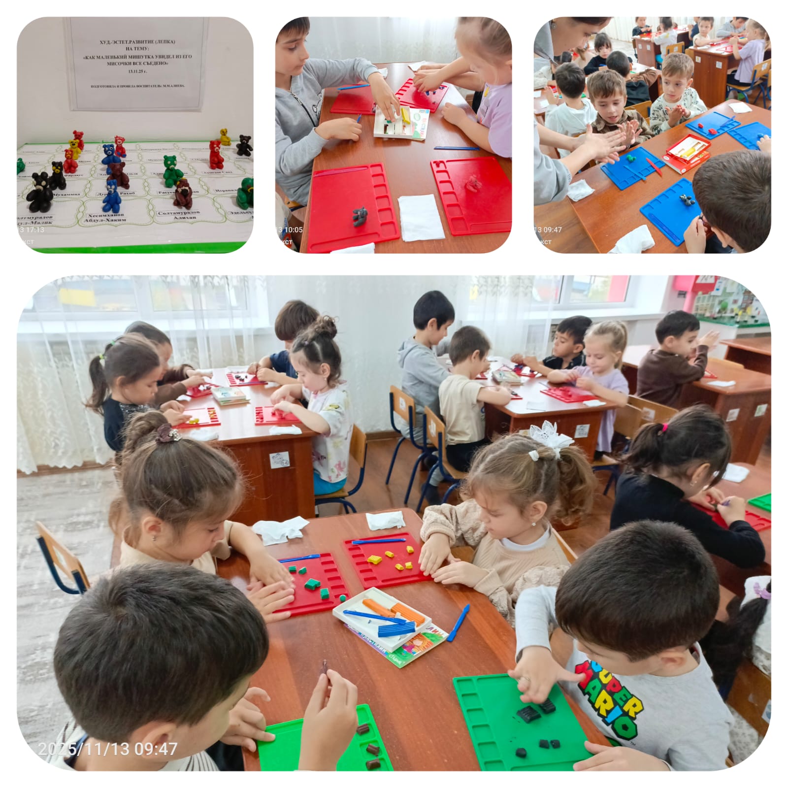 14.11.2025В МБДОУ «ДЕТСКИЙ САД» ИРС» «СТ. КУРДЮКОВСКАЯ» с воспитанниками старшей группы "Звездочка" проведено занятие по «Художест- венно-эстетическому развитию» (лепка) на тему: «Маленький Мишутка»Цель: учить детей создавать в лепке сказочный образ, учить лепить фигуру медвежонка передовая форму частей, их относительную величину.
